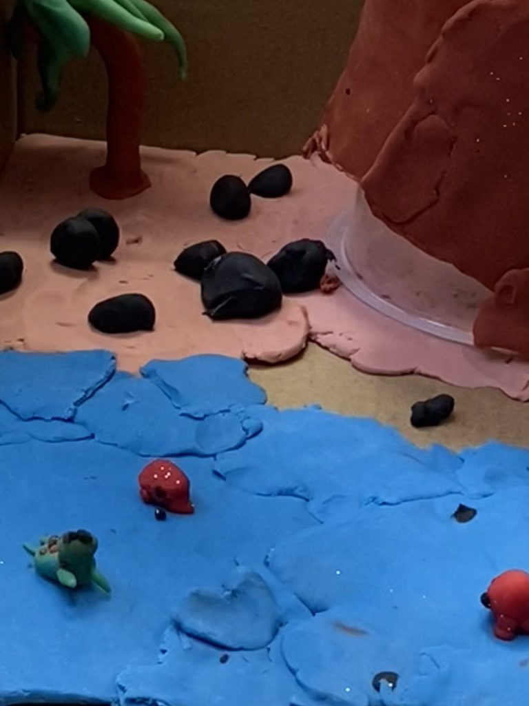 El alumnado de Primero de Primaria ha participado en este proyecto mediante una actividad creativa y cooperativa inspirada en el cuento Pete the Cat and the Supercool Science Fair. A partir de esta historia, todos los grupos han trabajado de forma conjunta para imaginar y construir una isla con su respectivo volcán, aportando cada clase su propia visión y manera de desarrollarla.