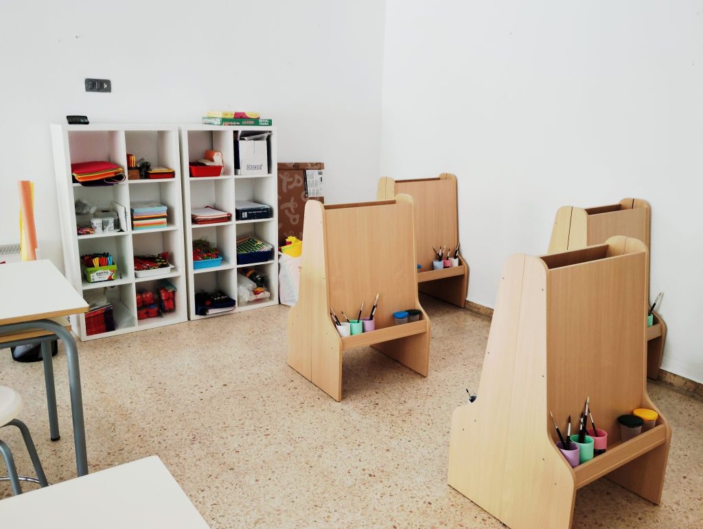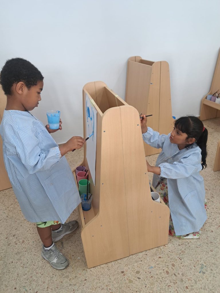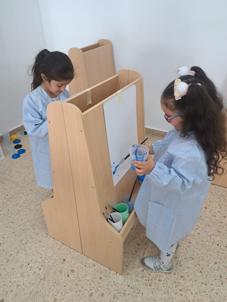 + CABALLETES: Se pueden disponer para favorecer la pintura en vertical al alumnado de infantil con los múltiples materiales que encontraríamos a la vista en los muebles.