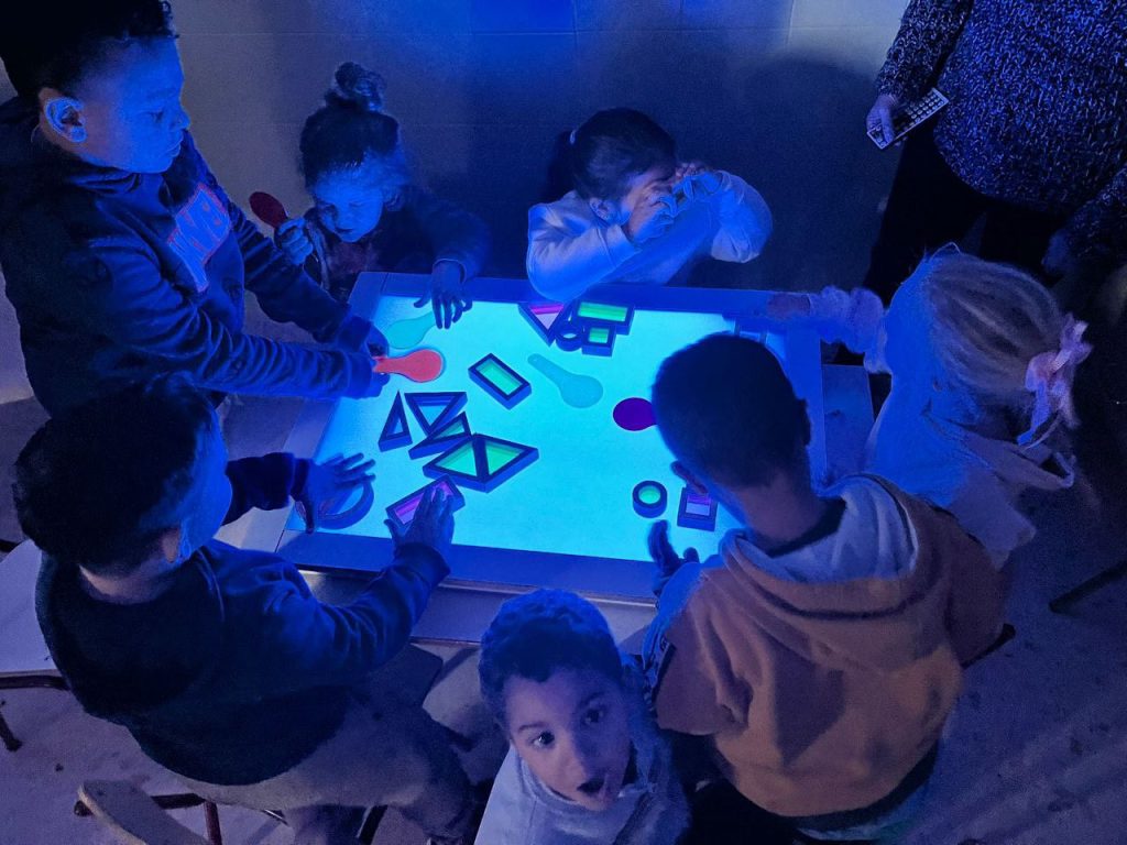 Aquesta setmana hem visitat per primera vegada la biblioteca del col·le amb les finestres tancades, i ha sigut una experiència màgica! Amb molta curiositat i emoció, vam descobrir un element nou que ens va cridar molt l’atenció: la taula de llum! Entre les prestatgeries plenes d’històries i contes, vam poder explorar formes, colors i materials translúcids, experimentant amb la llum d’una manera sensorial i creativa.