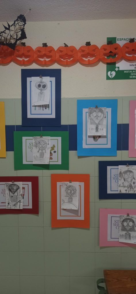 His illustrations, dark colours, and elongated figures have inspired our own artistic creations. We also discussed how his stories—although a little eerie—also speak to us about difference, friendship, and imagination. 💀🕯️