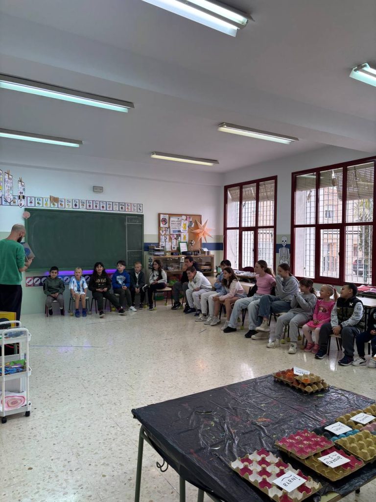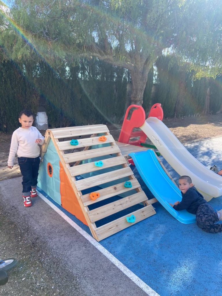 The playground also includes an ongoing school garden, where students take part in growing vegetables and aromatic herbs as part of projects related to sustainability, natural sciences, and healthy eating. Next to the garden, there is a compost bin, which allows for the management of organic waste generated at school, helping to close the natural cycle of matter and promote environmental responsibility and hands-on learning.