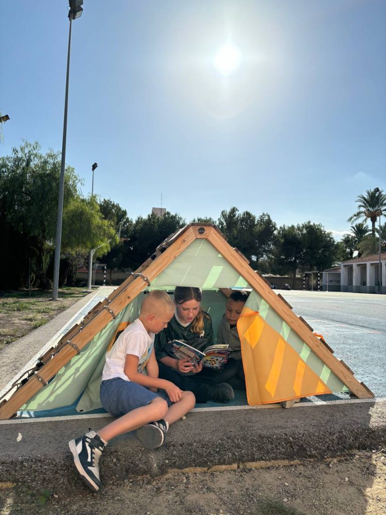 The main building, recently renovated, houses the Kindergarten classroom, with its own toilets, and one Primary Education classroom. It also includes several functional spaces: Headteacher’s Office and Staff Room, storage rooms for art materials and cleaning supplies, as well as three toilet rooms. In addition, this building contains the new reading spaces, designed to foster a love of reading and to build a reading community within the school.