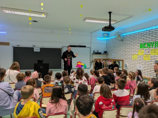 Las maestras y familias de la escuela hemos preparado una jornada con diferentes momentos. Para empezar los alumnos han disfrutado de un divertido teatro de marionetas con la representación del cuento “Castanyes amb banyes”.