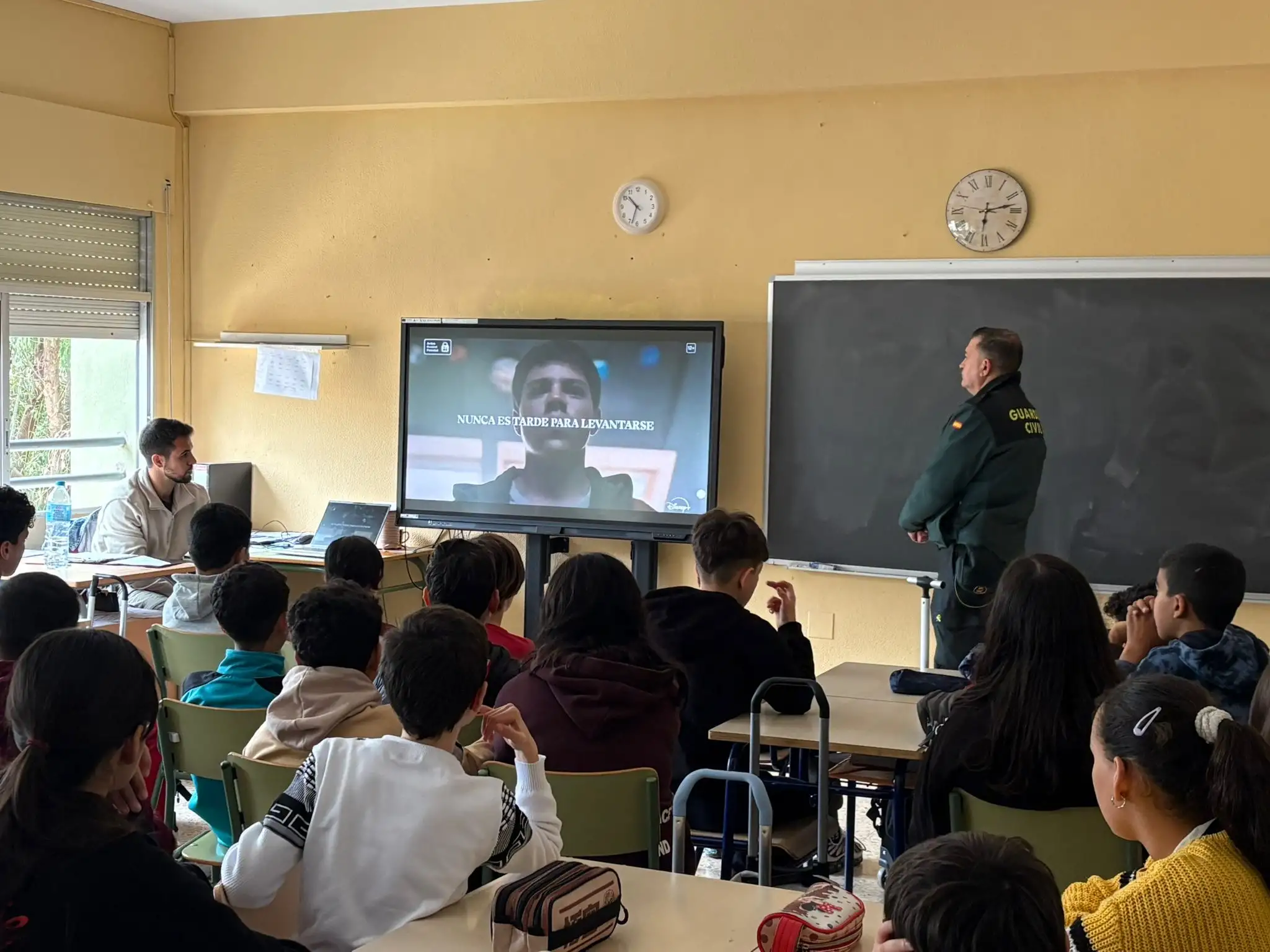 En el marco del Plan Director para la convivencia y mejora de la seguridad en los centros educativos, la Guardia Civil impartió recientemente una charla en el CEIP San Roque dirigida al alumnado de quinto y sexto de Educación Primaria. Esta actividad, realizada en colaboración con la Consellería, tuvo como objetivo principal concienciar a los estudiantes sobre los riesgos del ciberbullying y el uso inadecuado de determinadas páginas en internet.