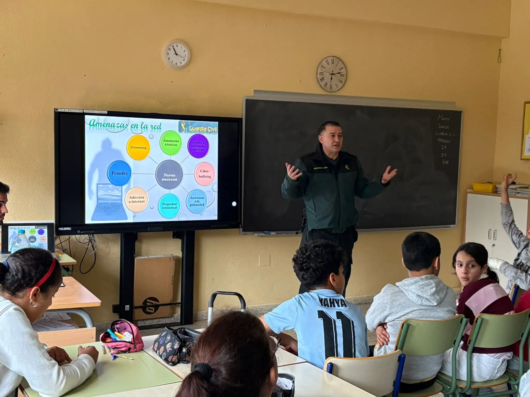 Durante la sesión, el agente explicó de forma cercana y adaptada a la edad de los alumnos qué es el acoso digital, cómo puede afectar a las personas que lo sufren y la importancia de actuar con respeto en el entorno online. Asimismo, se abordaron los peligros que pueden encontrarse en la red, como el acceso a contenidos inapropiados o el contacto con desconocidos, ofreciendo pautas claras para navegar de forma segura.