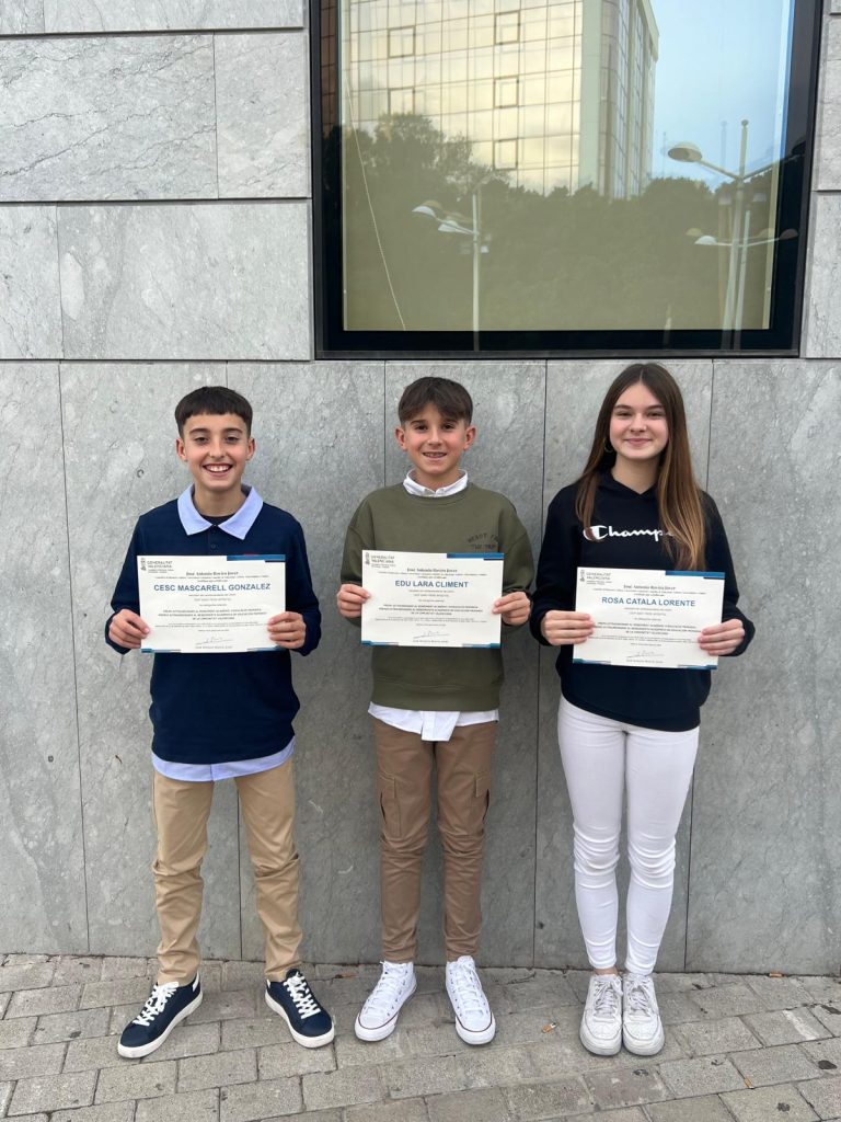 Estem d’enhorabona! ja que 3 alumnes que el curs passat van acabar 6è de Primària han aconseguit el premi extraordinari pel rendiment acadèmic a l’etapa de Primària, amb una mitja de 10 al seu expedient.