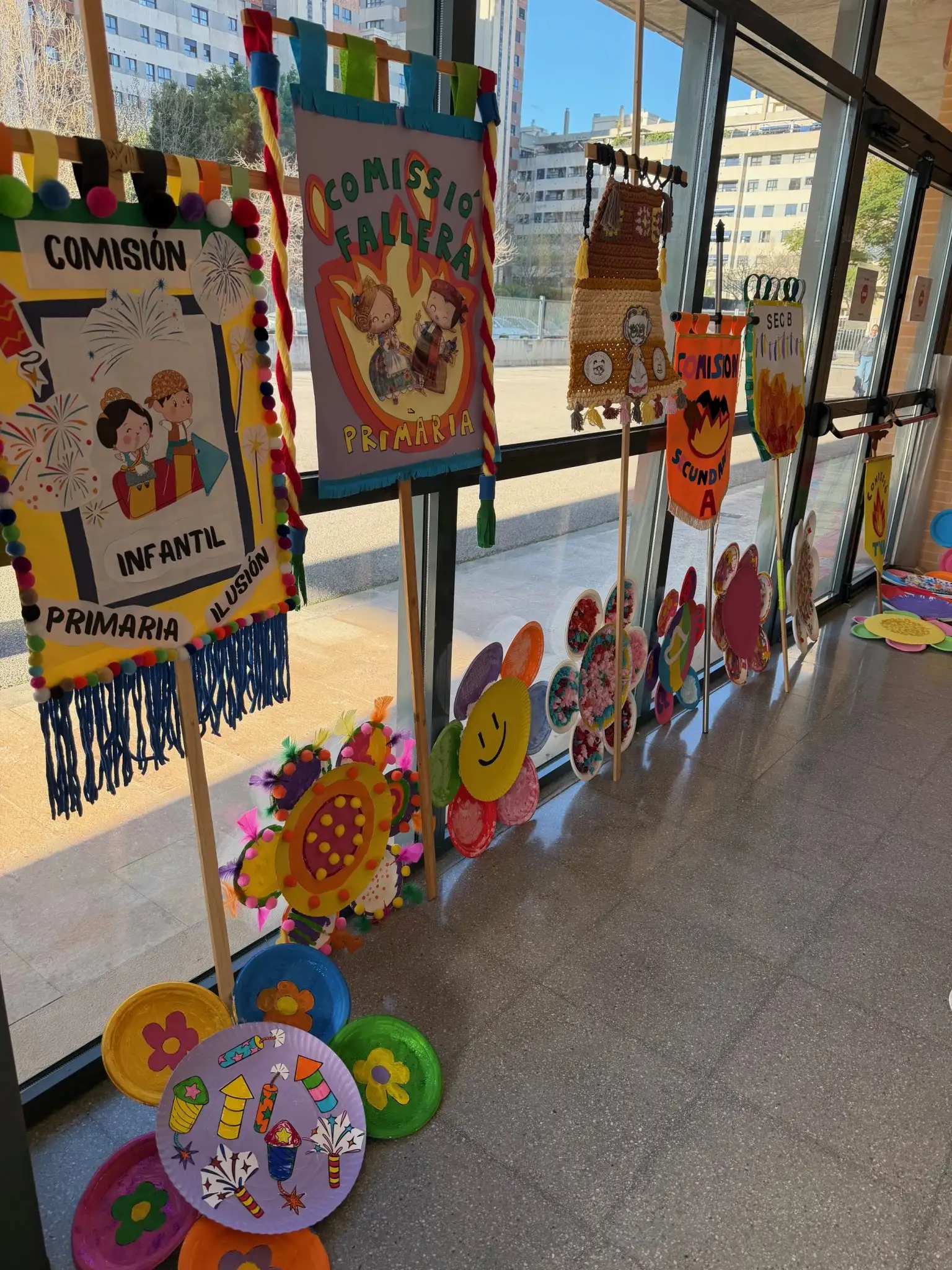 Las diferentes etapas salimos a visitar la falla y a entregar la flor ya decorada, como ofrenda a la primavera. Los especialistas de música nos acompañaron a la entrada con música fallera. Sacamos nuestros estandartes falleros y hasta hubo alguna fallera mayor y presidente.