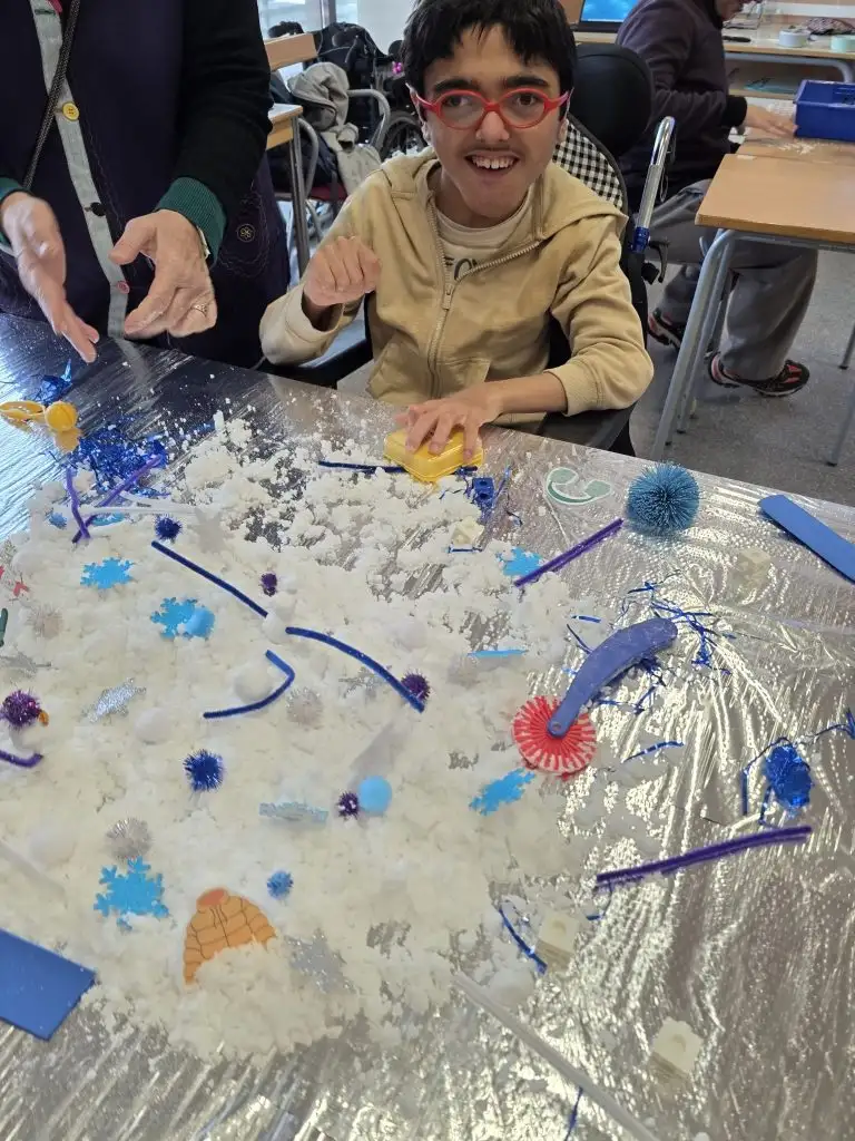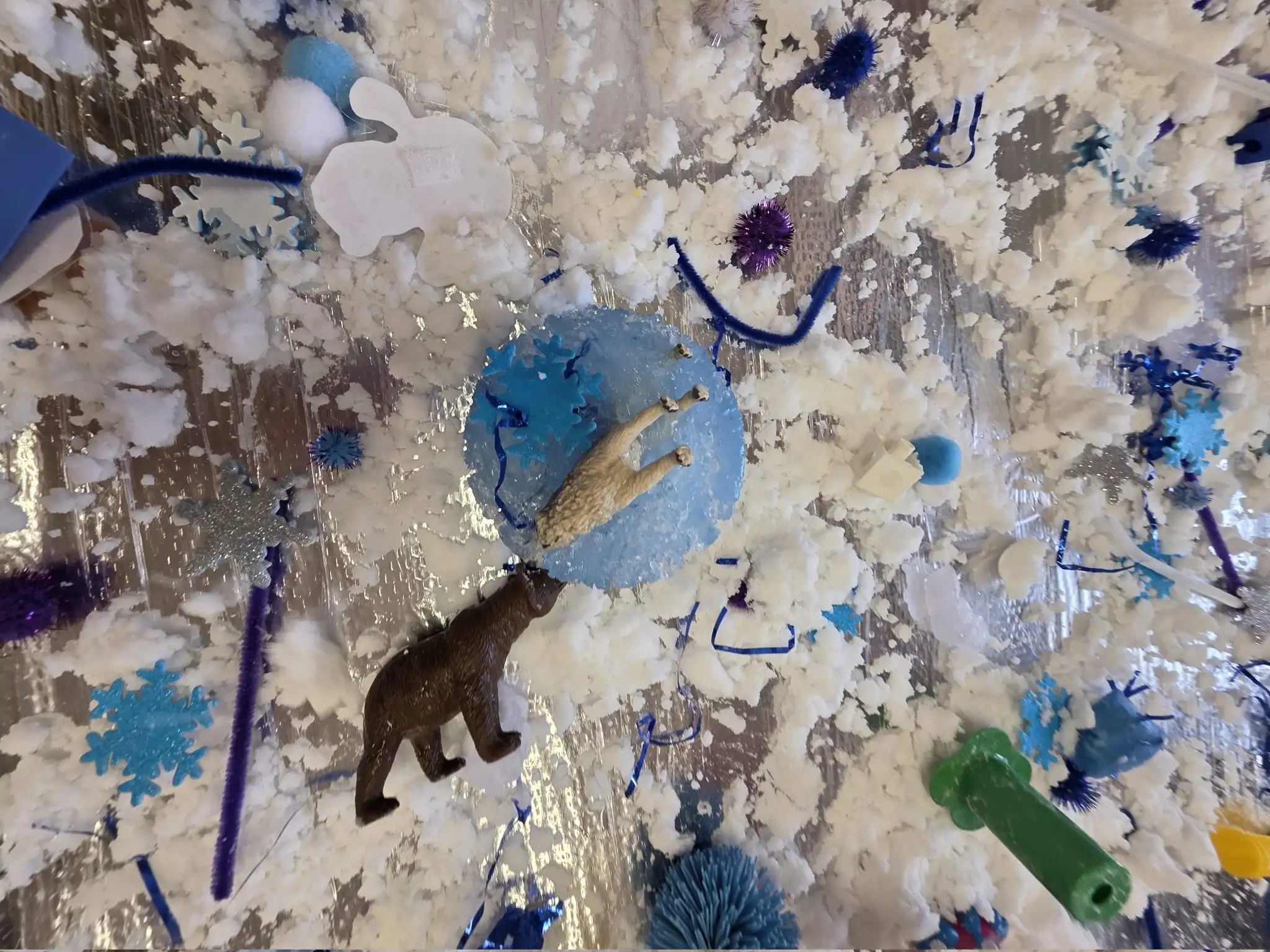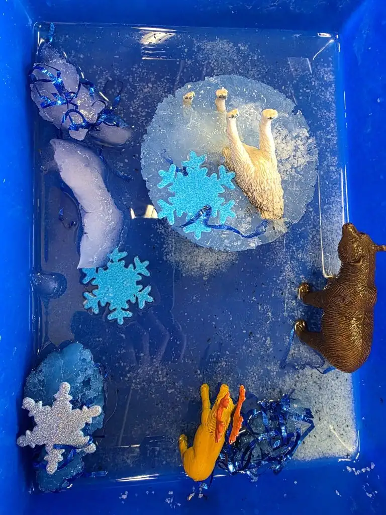 Hemos podido rescatar a los animales del ártico atrapados en el hielo. Nuestros exploradores polares han superado la misión haciendo uso de sal y agua caliente. También han jugado con un paisaje nevado, haciendo muñecos de nieve y diferentes trazos. Han podido conocer vocabulario del invierno, escondido bajo una capa de gelatina, y muchas más actividades súper divertidas.