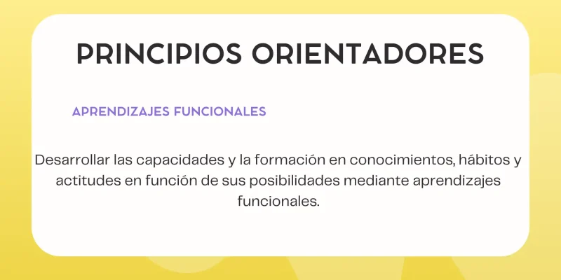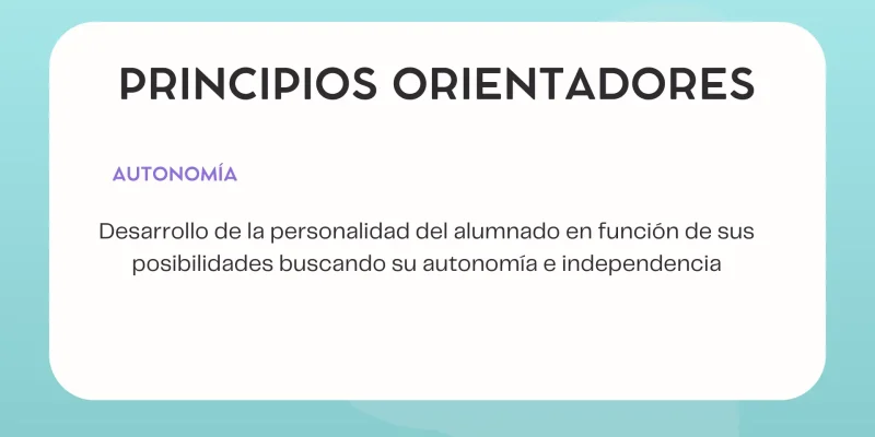 El centro tiene como principal objetivo el potenciar al máximo el desarrollo de la autonomía y comunicación de nuestros alumnos para favorecer una mayor calidad de vida personal y una mejor calidad en relación con el entorno. Para posibilitar dicho objetivo, el centro tiene la intención de potenciar la formación de los profesionales en su labor educativa, abrir canales de comunicación entre los mismos y con las familias realizando una práctica educativa que priorice aprendizajes funcionales que posibiliten la normalización e integración social de nuestros alumnos y alumnas. Por lo que los principios orientadores de nuestra acción educativa son los siguientes: