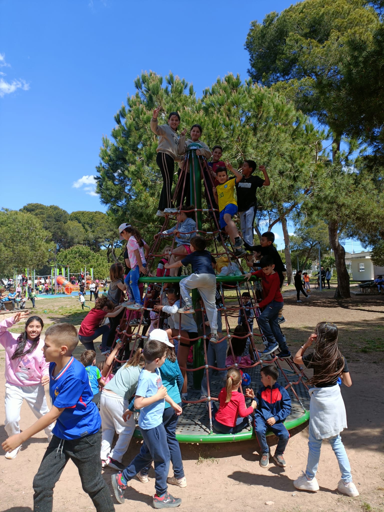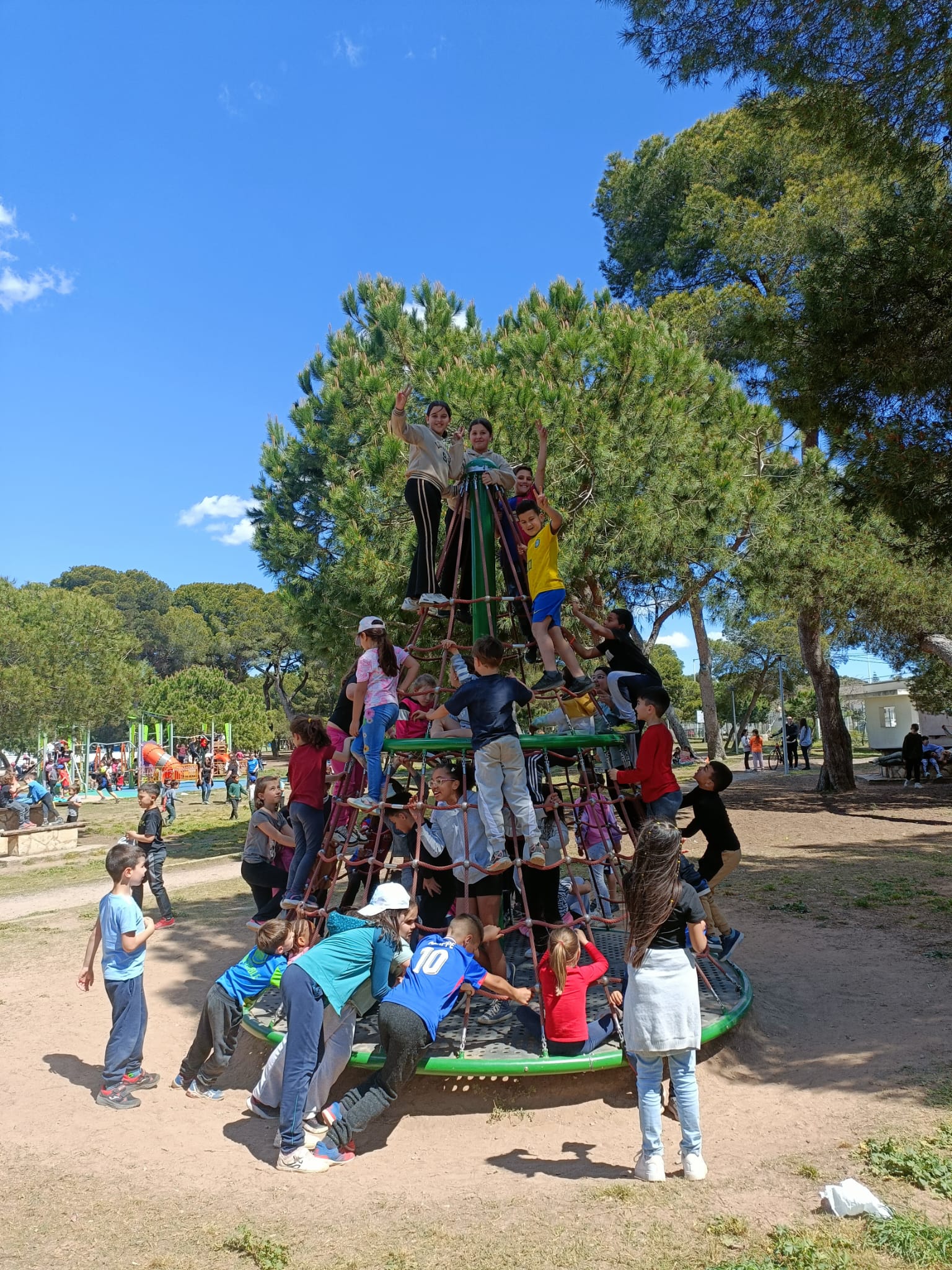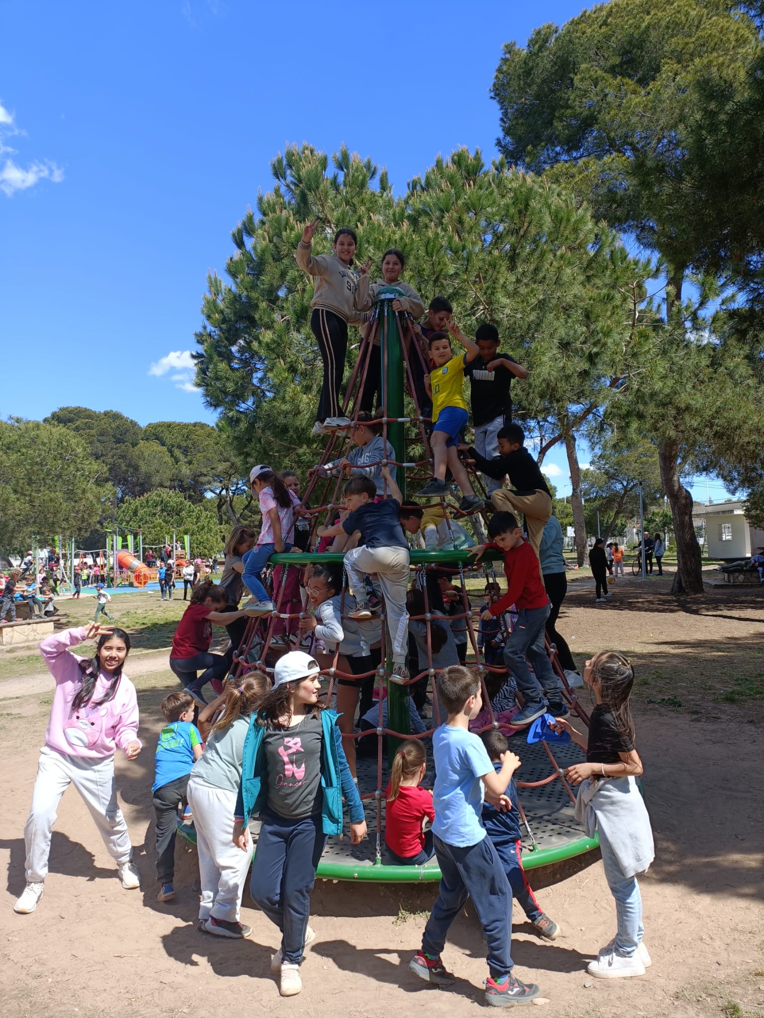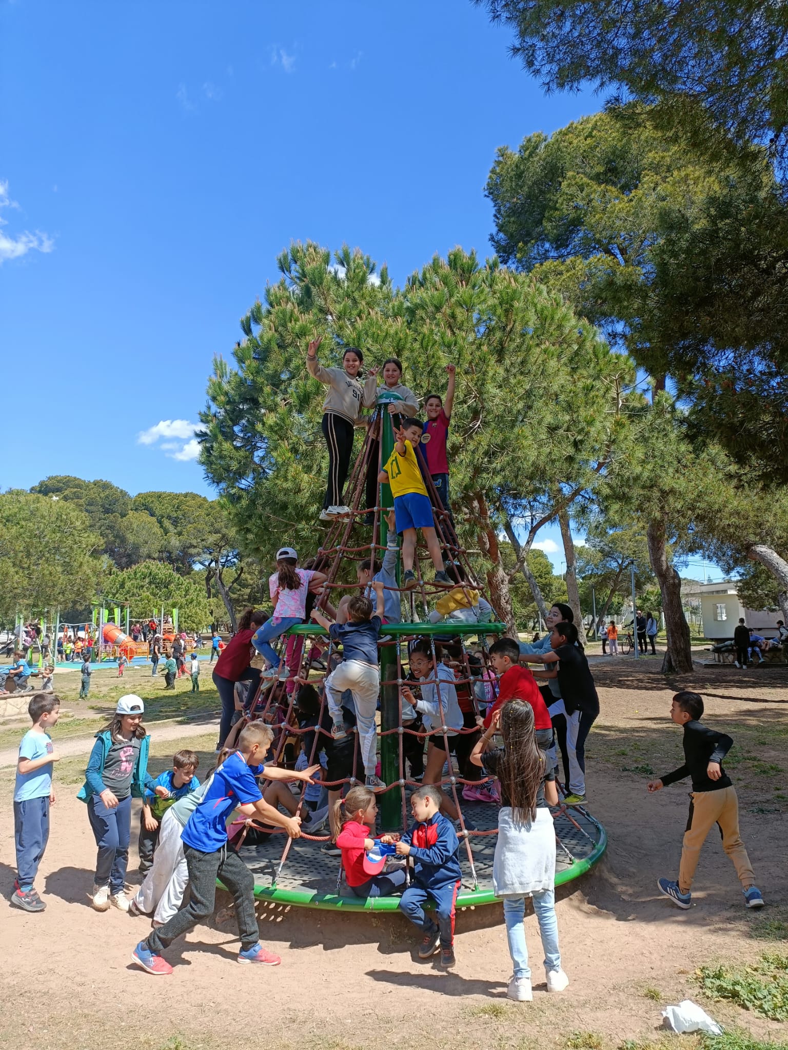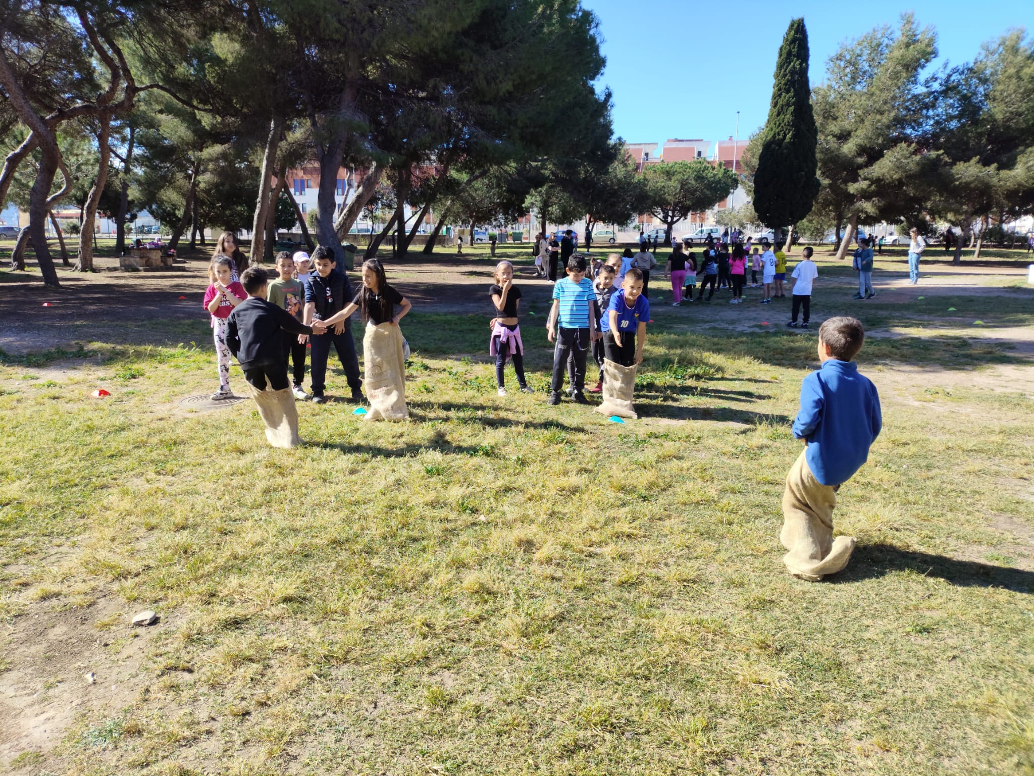 La classe de cinqué ha participat d'una trobada amb totes les escoles de Castelló al parc Ribalta per tal de gaudir jugant als jocs populars igual que ho feien els nostres avis i àvies.