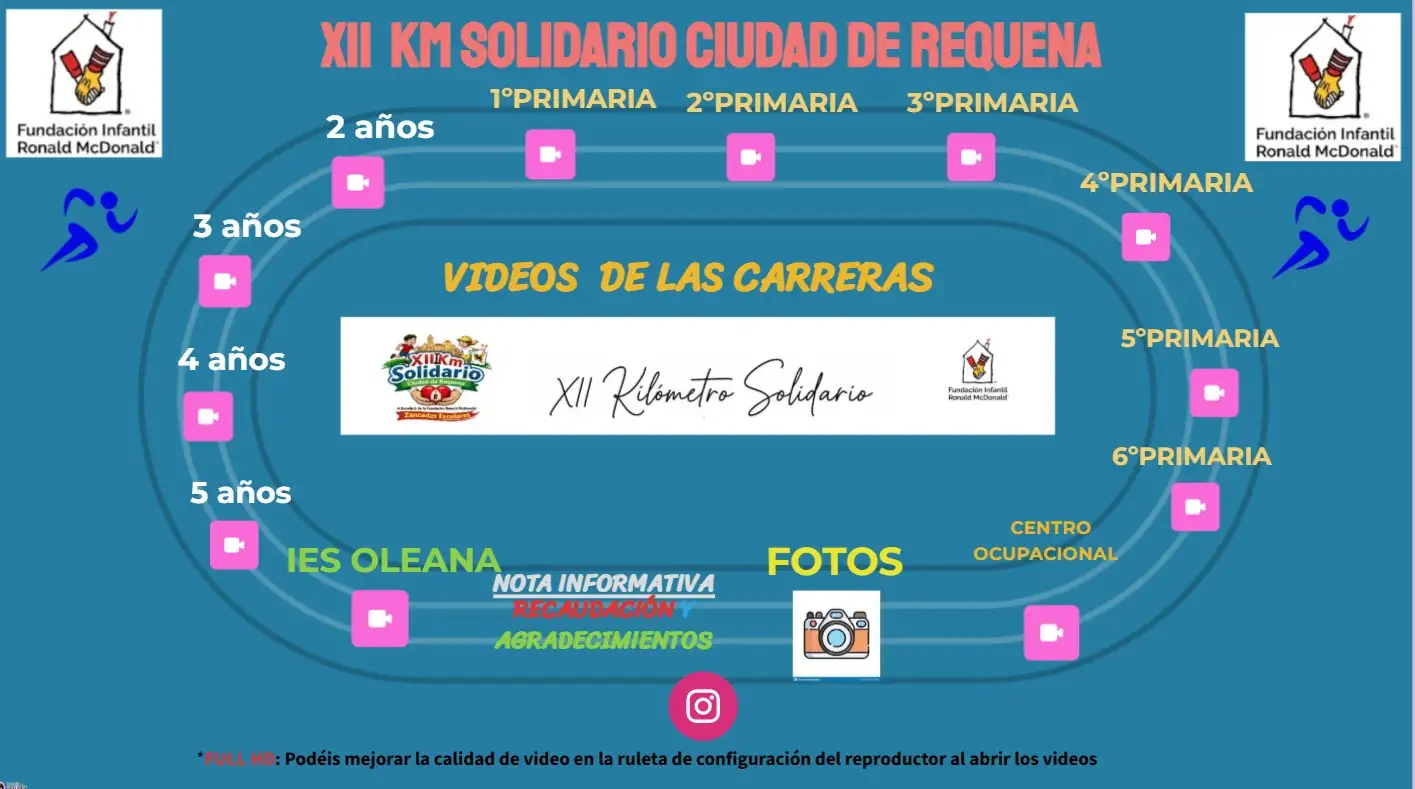 Está fundación, así como todo el profesorado de EF organizador del evento, agradece la enorme participación del alumnado, familias, profesorado de los centros de educación infantil y primaria, IES Oleana y al Centro Ocupacional de Requena. Gracias a vuestra solidaridad la fundación Ronald McDonald ha recibido la cantidad de € (en breve se publicará la cantidad).