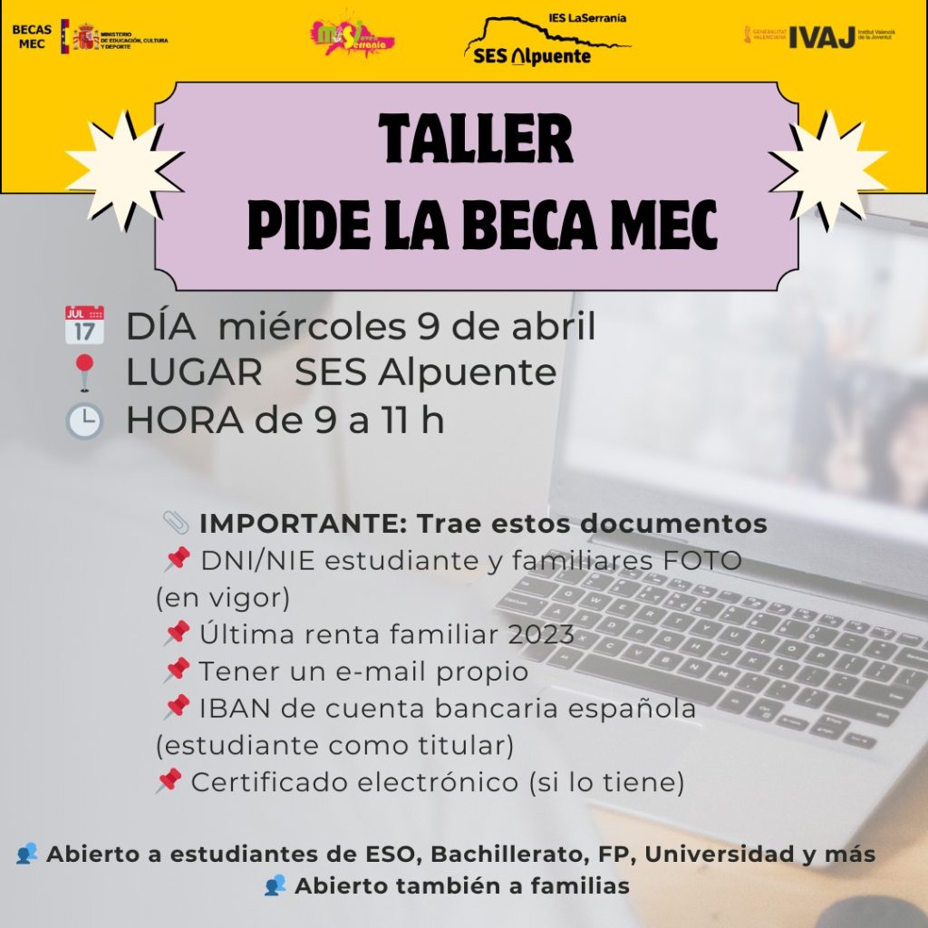 Se os convoca a la REUNIÓN DE INICIO DE CURSO, donde os daremos la información pertinente al curso escolar 25-26. Posteriormente será la reunión con los tutores de vuestros hijos/as. Tendrá lugar en la Sala Multiusos de la SES Alpuente el lunes 15 de septiembre a las 16:30 horas.
