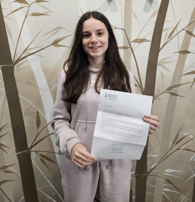 L’alumna Paloma Osma Tomàs ha rebut una carta de la Conselleria d’Educació, Cultura, Universitats i Ocupació en la qual se la felicita per la concessió del Premi Extraordinari al rendiment acadèmic per la seua trajectòria i qualificacions a l’etapa d’educació secundària, valorant l’esforç i dedicació que hi ha darrere d’este gran resultat.