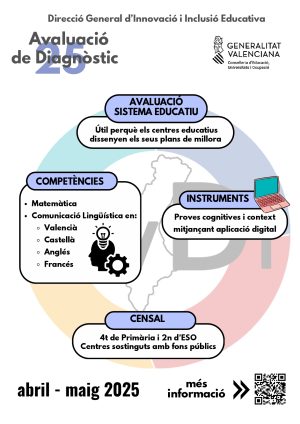 Vos informem que la Conselleria d’Educació, Universitats i Ocupació durà a terme un procediment d’Avaluació de Diagnòstic, en què participarà l’alumnat de 2n d’Educació Secundària Obligatòria.