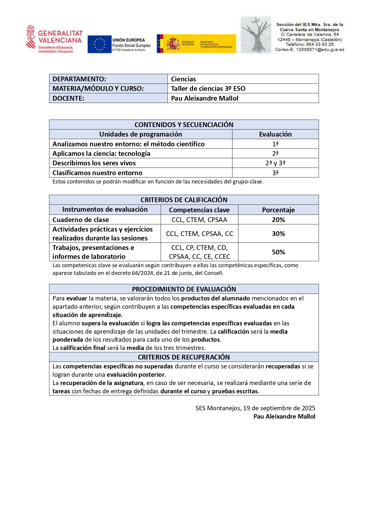 Sección del IES Ntra. Sra. de la Cueva Santa en Montanejos