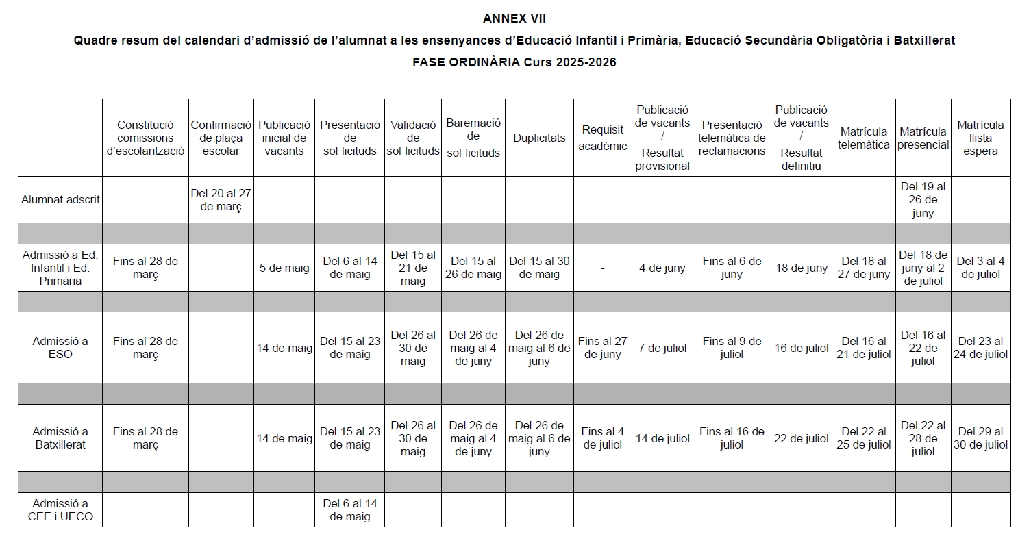 Cal recordar que si un alumne confirma plaça en el centre adscrit i concursa en el procediment general d'admissió a un altre centre, concorrerà en duplicitat i quedarà fora de tot el procediment, havent d'esperar per a poder triar les vacants resultants a partir del 23 de juliol.