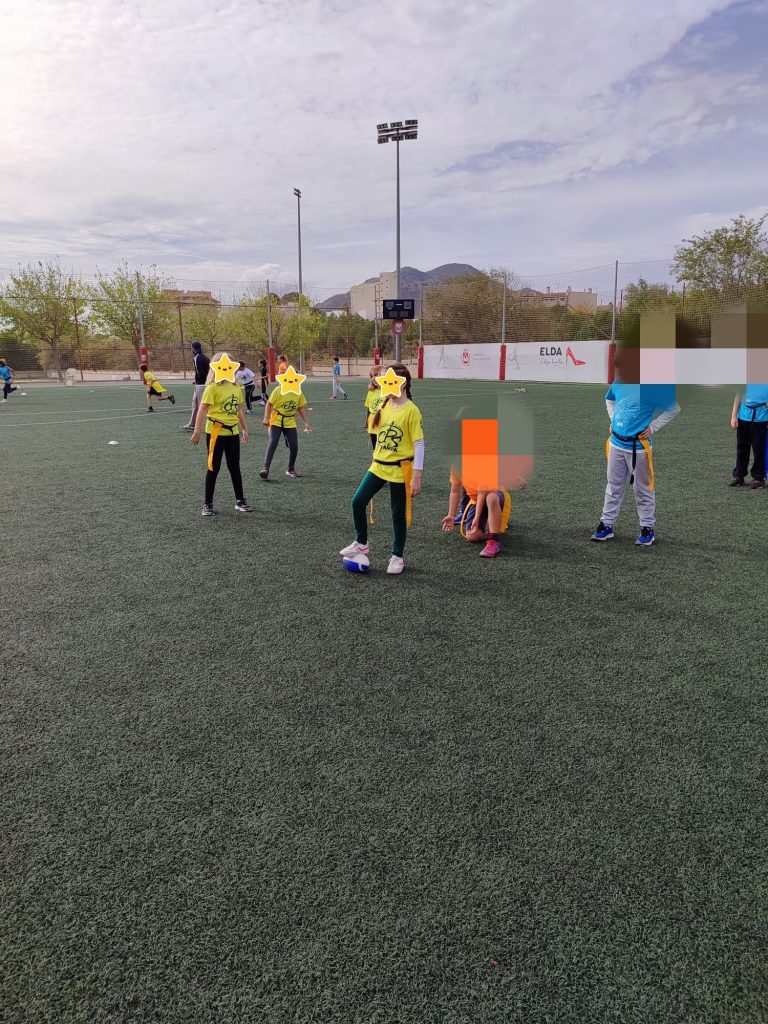 El pasado 8 de noviembre, el alumnado de 4º pudo disfrutar de unas jornadas de rugby tag muy divertidas junto a más niños y niñas de diferentes coles de Elda. Esta jornada organizada por los profes de Educación Física de algunos coles de la localidad nos ha servido para culminar con la situación de aprendizaje que hemos estado realizando durante las últimas semanas. Para poder participar en las mismas, que se celebraron el los campos de fútbol de la Sismat, nos desplazamos hasta allí en bicicleta, de esta forma trabajamos también hábitos y rutinas saludables como el uso de la bicicleta como medio de transporte sostenible y que nos permite hacer ejercicio físico de una forma segura y divertida. El recorrido fue por ciclo calles, carril bici y paseos por donde no pueden circular los coches.