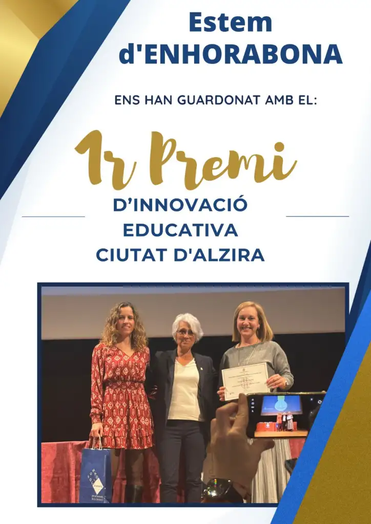 a la Casa de la Cultura i de la mà de la regidora Virtuts Piera, hem rebut el PRIMER PREMI en la categoria d’educació Primària del XXVII Premi d’Experiències d’Innovació Educativa Ciutat d’Alzira 2025. Volem agrair a l’Ajuntament d’Alzira i a la Fundació bromera aquest tipus d’iniciatives que posen en valor el nostre treball.