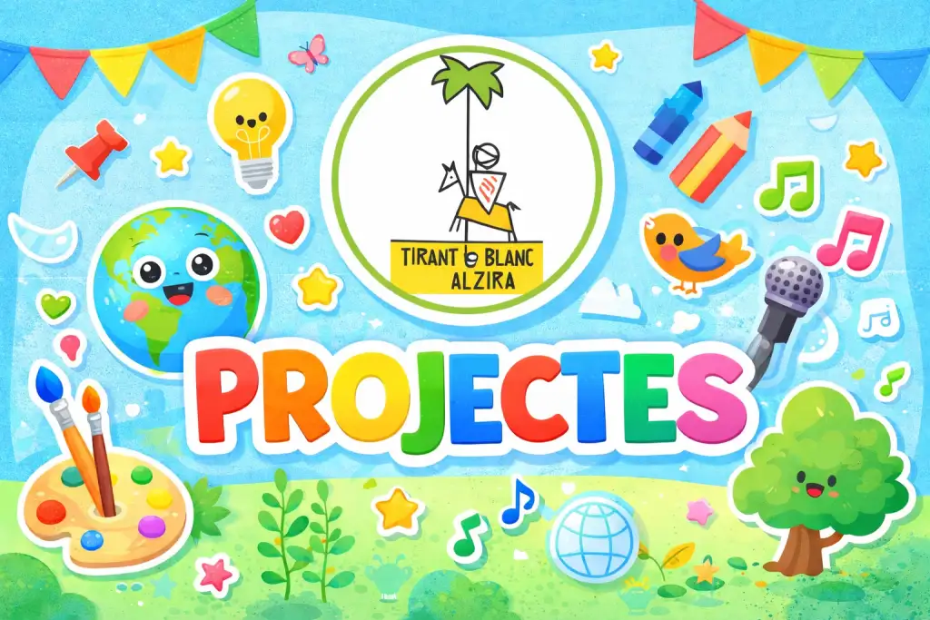 En el CEIP Tirant lo Blanc es realitzen diversos projectes educatius: Erasmus+, per a col·laborar amb escoles d’altres països; Ràdio Tirant, on l’alumnat fa programes de ràdio; Guardabosc, per a cuidar el medi ambient; PIIEE, que promou la participació i la convivència; i Music Mind Games, per a aprendre música jugant. 🎨🌍📻🎶🌳