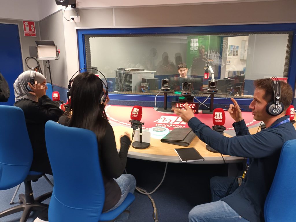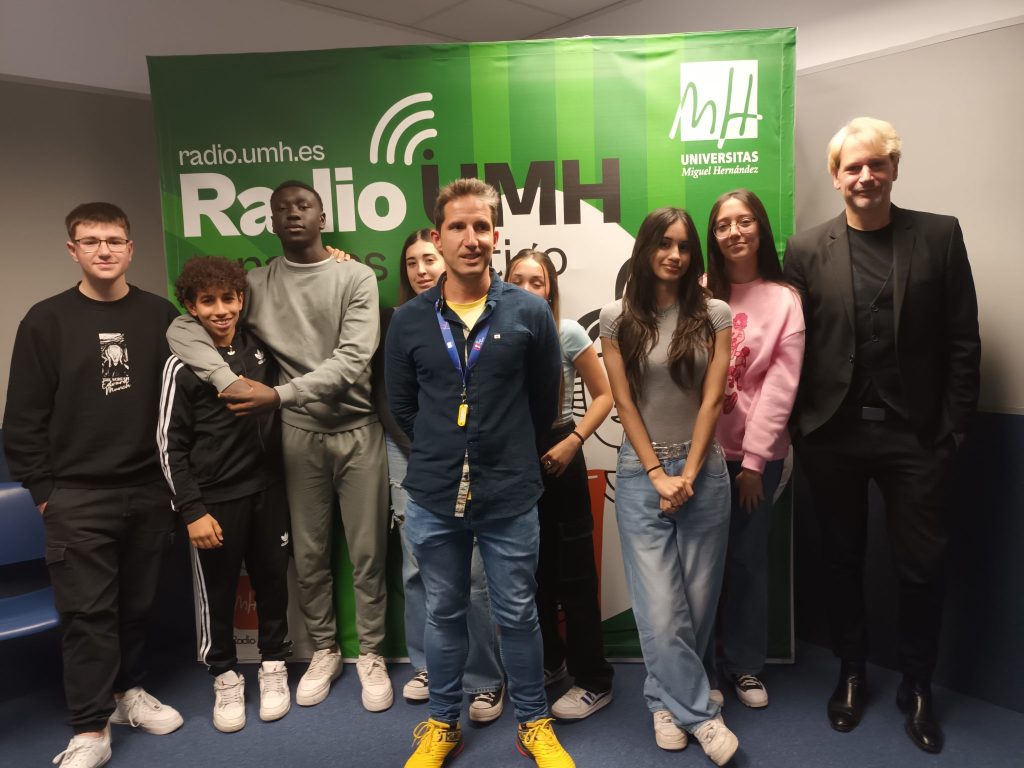 Y el día 1 de abril, nuestros alumnos de 4.º ESO de la optativa de Italiano visitaron el estudio de Radio UMH, acompañados por sus profesores de italiano Mar y Simone, y la auxiliar de conversación Stefania, junto al profesor de francés Pierre.