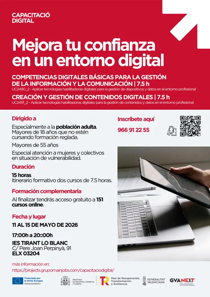 Dirigido a mayores de 55 año, puedes inscribirte en el centro o en el siguiente enlace.