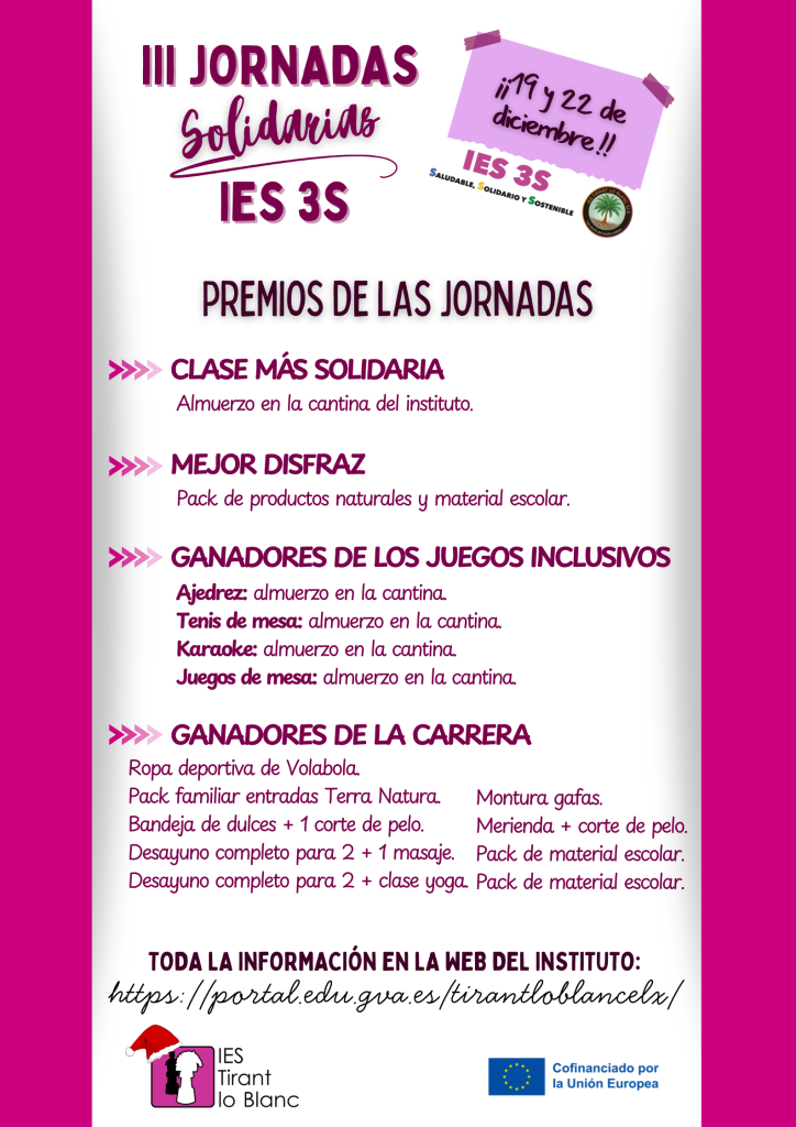 ¡Ya llegan las III Jornadas solidarias IES 3S del Tirant!!!