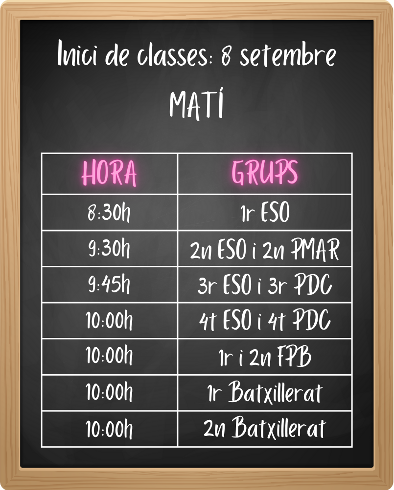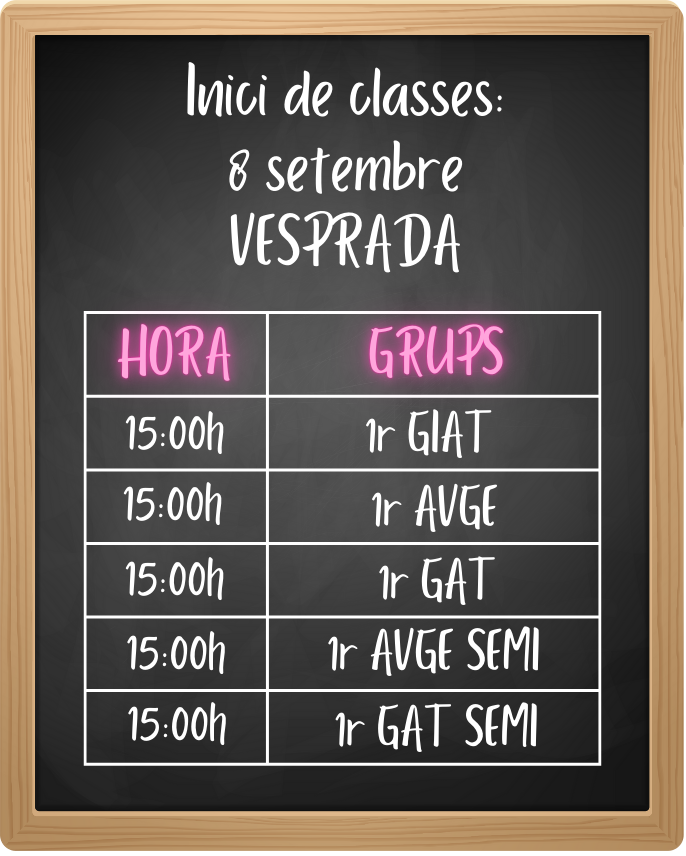 A continuació, podeu consultar els horaris de començament de tots els alumnes i alumnes del Tirant: