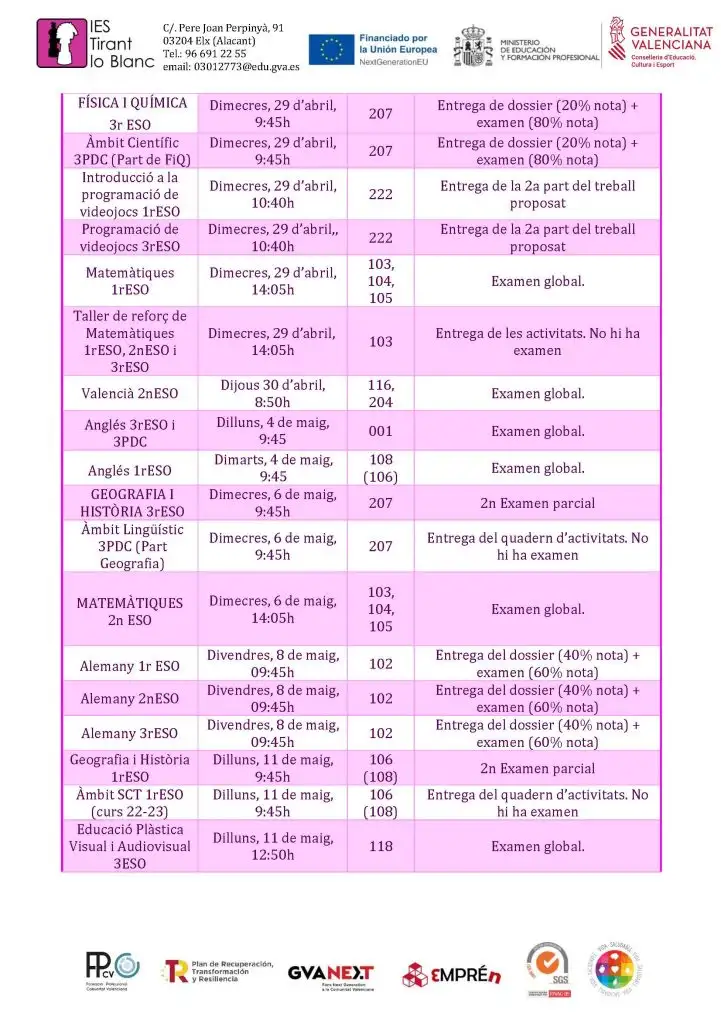 Punxa en el botó del departament de la matèria/assignatura que tens pendent de cursos anteriors per a veure com aprovar-la.
