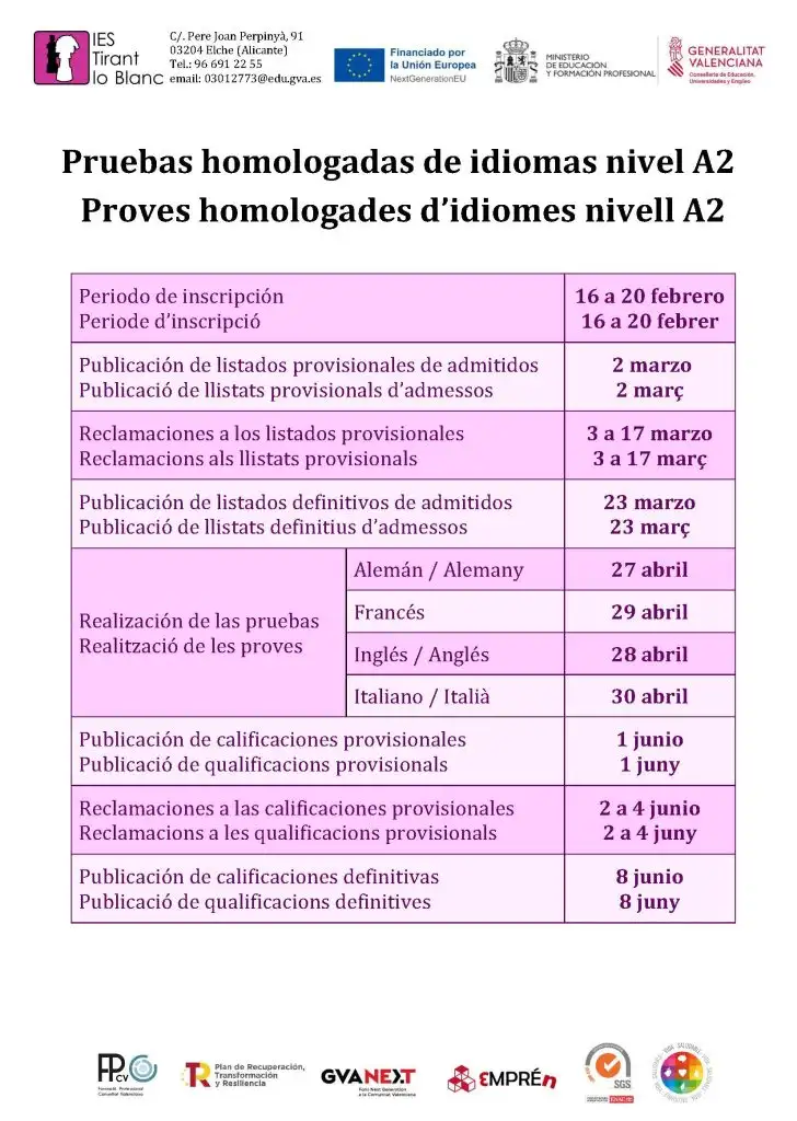 PROVES HOMOLOGADES D’IDIOMES NIVELL A2