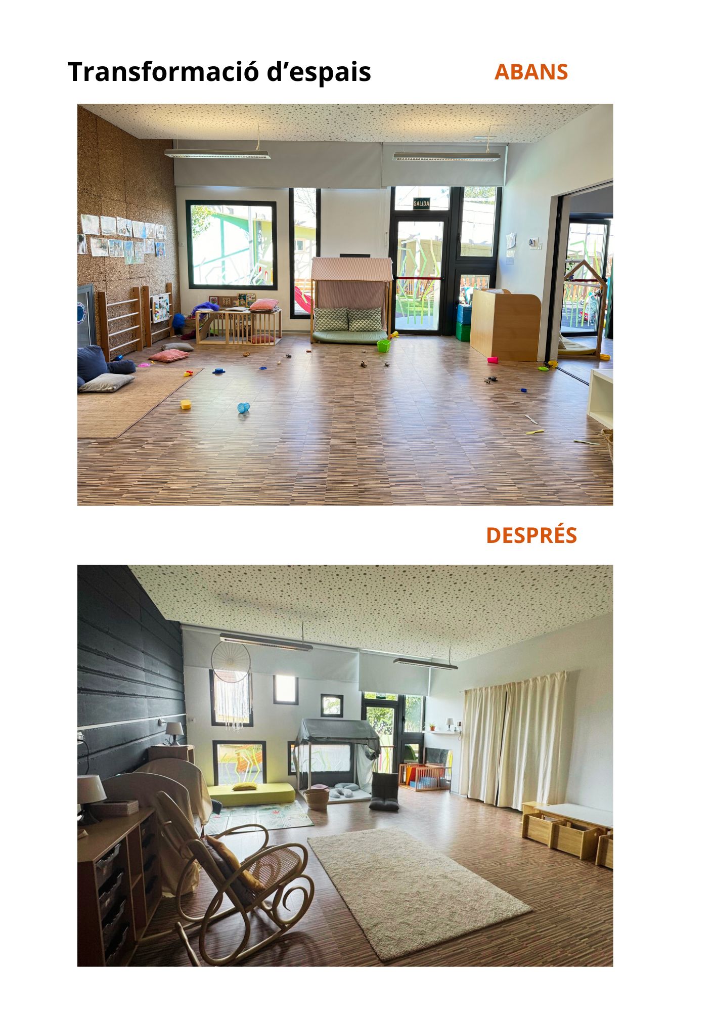Con nuestra participación queremos dar a conocer una escuela pública de primer ciclo de Educación Infantil que está impulsando un modelo de actuación donde el niño y la niña es el protagonista de sus aprendizajes. Y también mostrar el cambio que hemos hecho a nivel de espacios y de nuestra visión del niño y la niña.