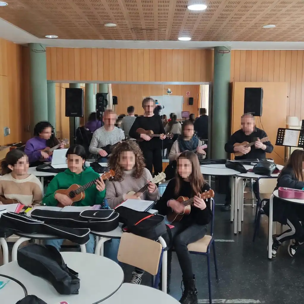 Proyecto de innovación educativa de educación musical en el que el alumnado se inicia en la práctica del ukelele a partir de 3º de Primaria. El ukelele, instrumento de cuerda, potencia la polifonía, puesto que el alumnado puede tocar a la vez un instrumento y acompañarlo con la voz.