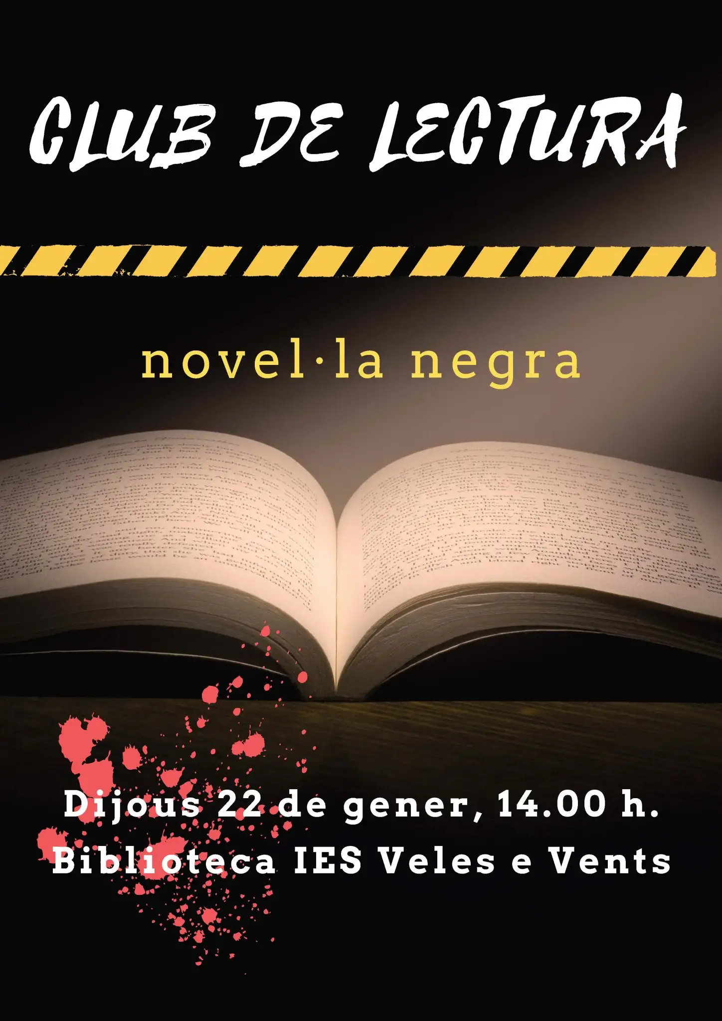 Durante los meses de enero y febrero se ha desarrollado el segundo club de lectura en el Veles, en esta ocasión con alumnado participando de 4.º ESO y Bachillerato. Como ya se informó, este curso el club de lectura tiene la temática de la novela negra, que será el género alrededor del cual girará la semana literaria del centro en el mes de abril.