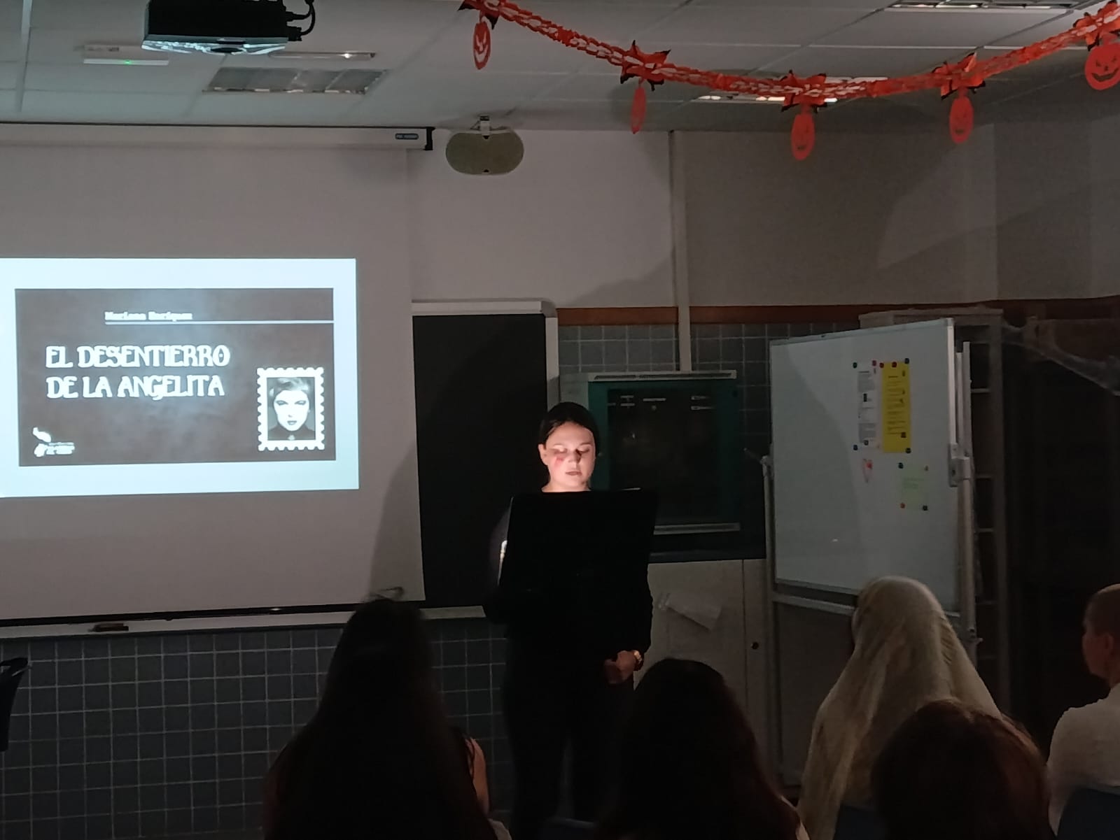 El divendres, 31 d’octubre, es va realitzar un contacontes terrorífic a la biblioteca del centre. Per dur-la a terme es va contar amb la magnifica col·laboració d’alumat de Batxillerat que van narrar unes històries que van aconseguir estendre la por entre l’alumnat i professorat assistent.