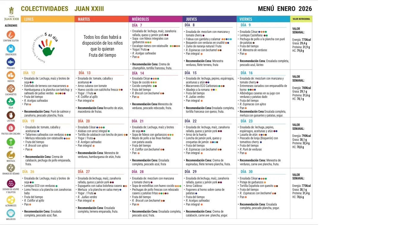 | PERIODO | LECTIVO (Sin comer) | COMEDOR | EXTRAESCOLARES |